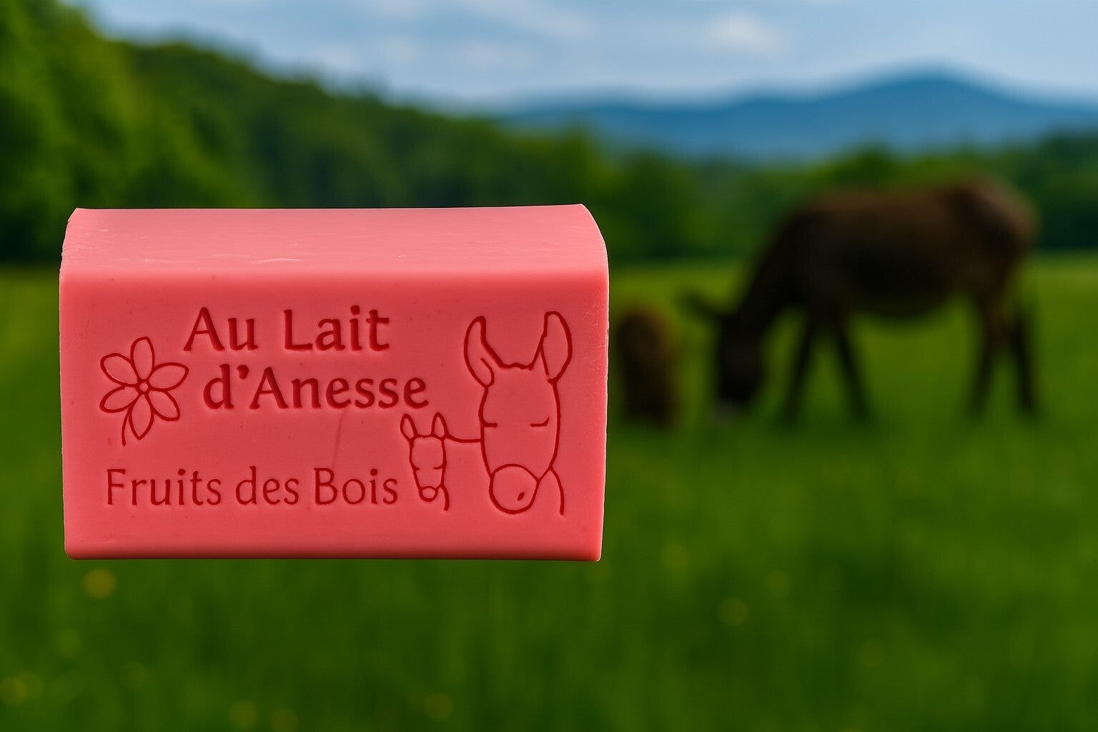 Un savon artisanal aux fruits des bois, enrichi de 8 % de lait d’ânesse bio, idéal pour les peaux sensibles.