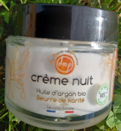Découvrez notre crème de nuit pétillante à l'huile d'argan bio et au beurre de karité, soigneusement fabriquée en France .