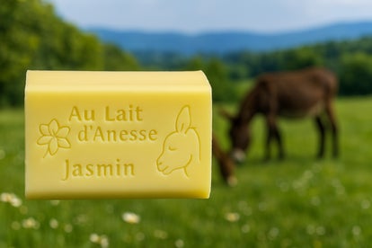Ce savon artisanal au jasmin, enrichi de 8 % de lait d’ânesse bio, est un soin naturel pour les peaux délicates.